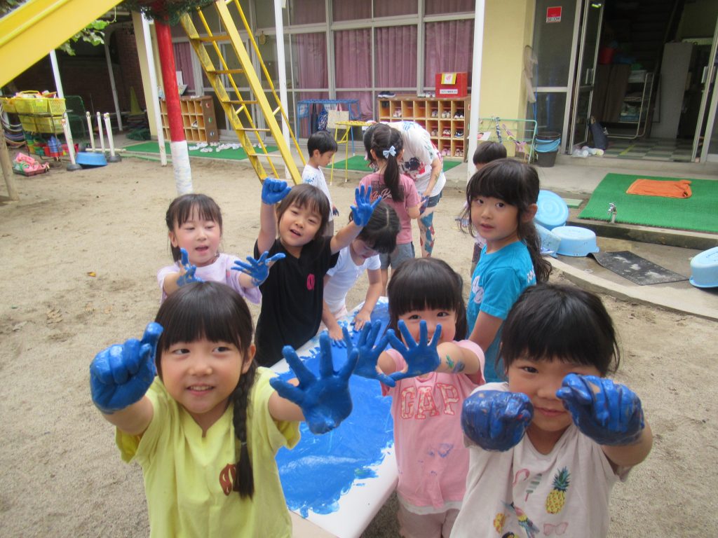 YMCA幼稚園の夏の遊びの一つに、ボディペインティングがあります。