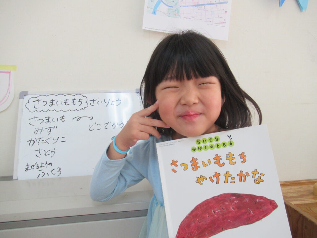 きっかけは一冊の絵本。「つくれそうじゃない?」「やってみたいな…」という子どもたちの声から始まったさつまいももち。調理だけでなく、お買い物まで子どもたちが行ってきました。