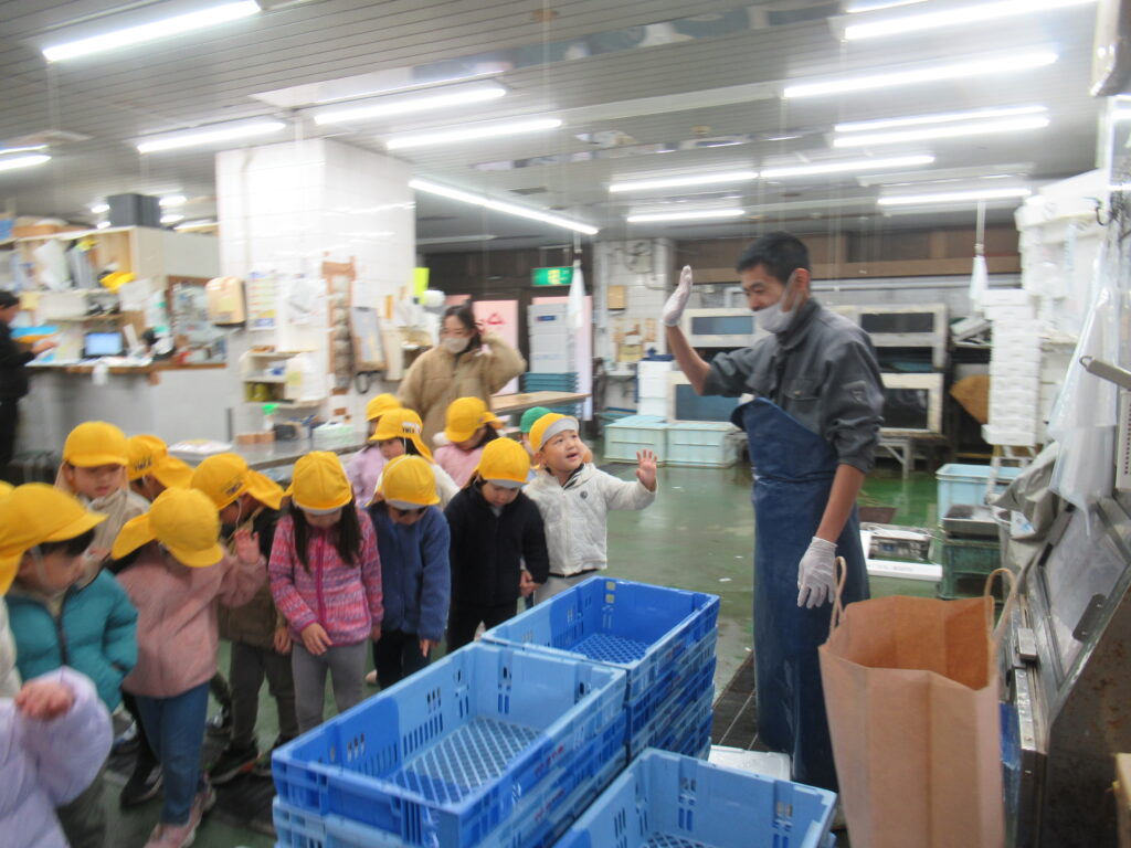 ヤマイチさんは給食のお魚を準備し、届けてくれています。子どもたちは、「いつもありがとう」「いつも骨をとってくれてありがとう」と伝えていました。発泡スチロールの中のお魚を見せてくれたり、一緒に写真も撮ったりと貴重な時間を過ごさせていただきました。