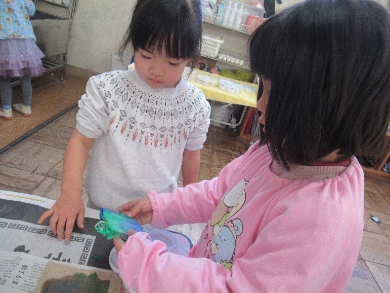 写真は作っている様子です。年長組が優しく教えてくれています…♡