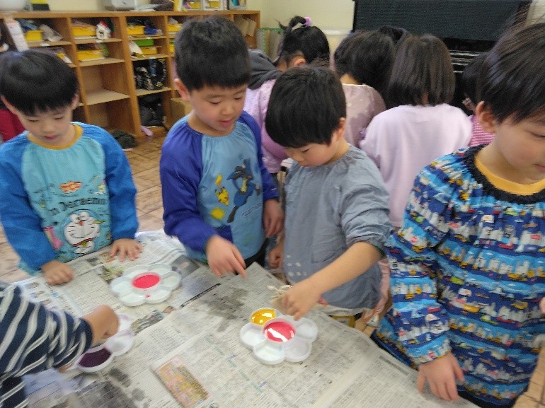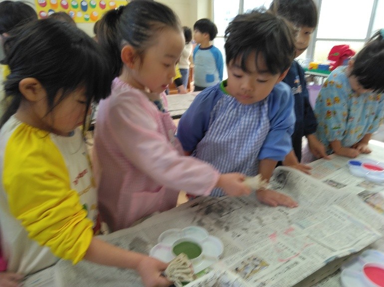 仙台YMCA幼稚園も、国際協力募金に参加することになりました。今回は年長組・年中組の子どもたちが力を合わせ、ひとつひとつ手染めした巾着を販売します。